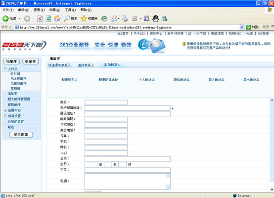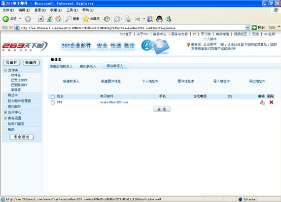 按照页面提示,添加个人地址本资料,如:"姓名""电子邮箱地址"等,完成后按页面下方的"确定",即成功添加一个地址,如下所示:
