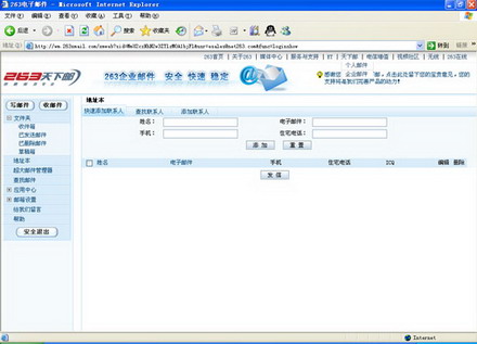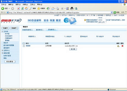 在邮箱WEB页面,点击"地址本",进入地址本页面: